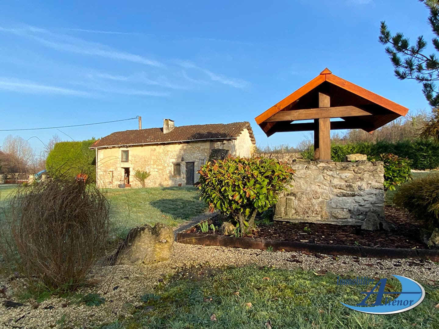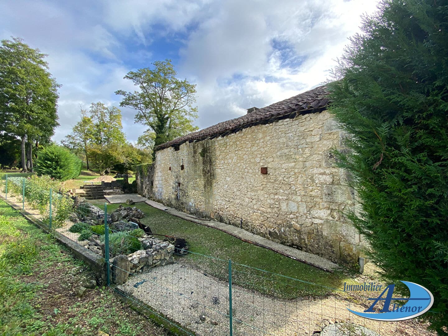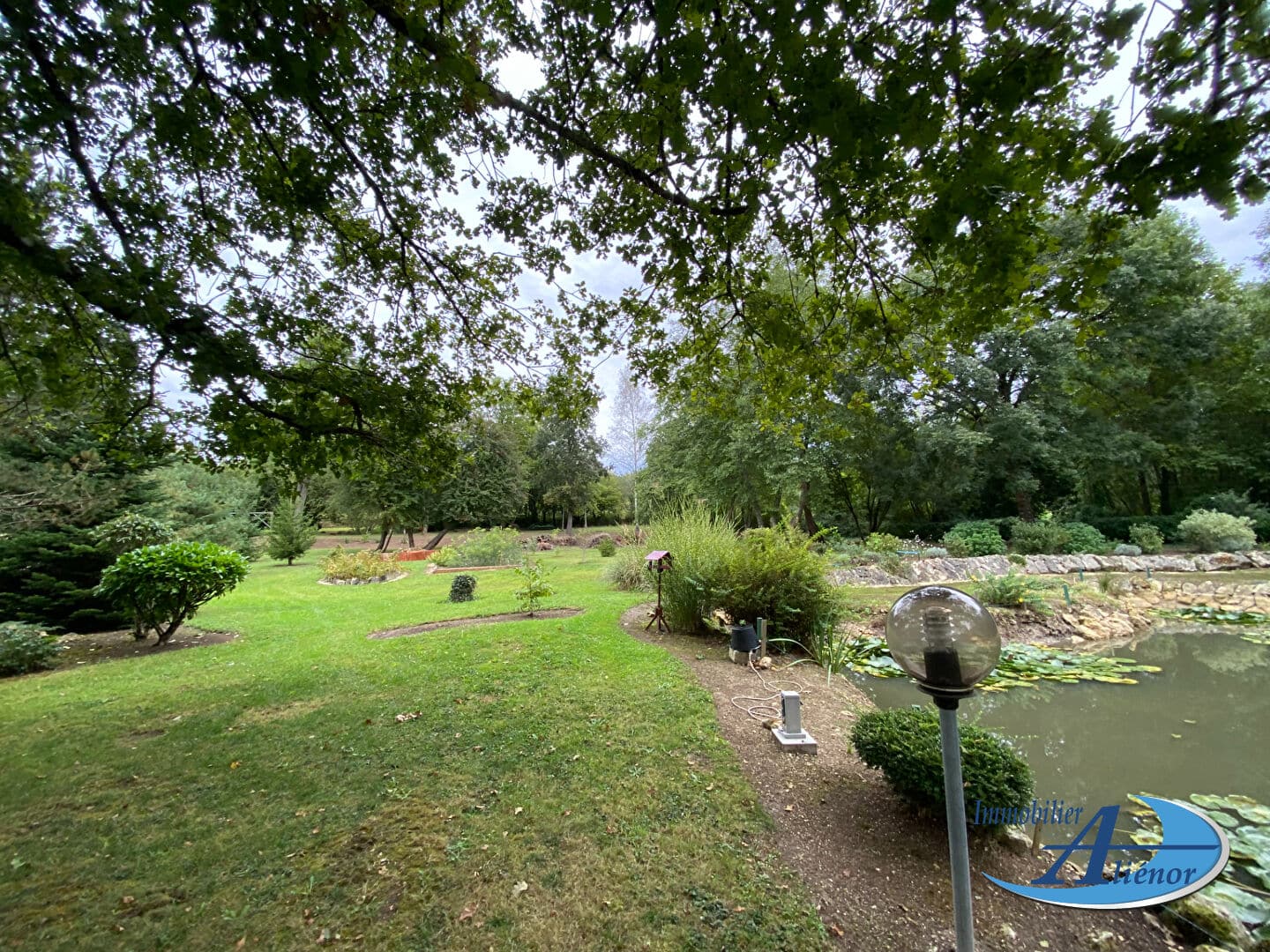 Ce moulin en pierre domine le parc arboré de 9350m² avec son petit étang et son puits ; tout en longeant la berge de la rivière.