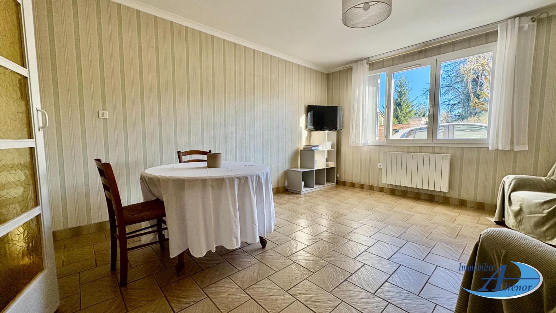 La maison se compose d’une entrée, d’un salon lumineux ouvert sur la salle à manger, d’une cuisine indépendante, d’une salle de bain, de trois belles chambres et d’un garage attenant.