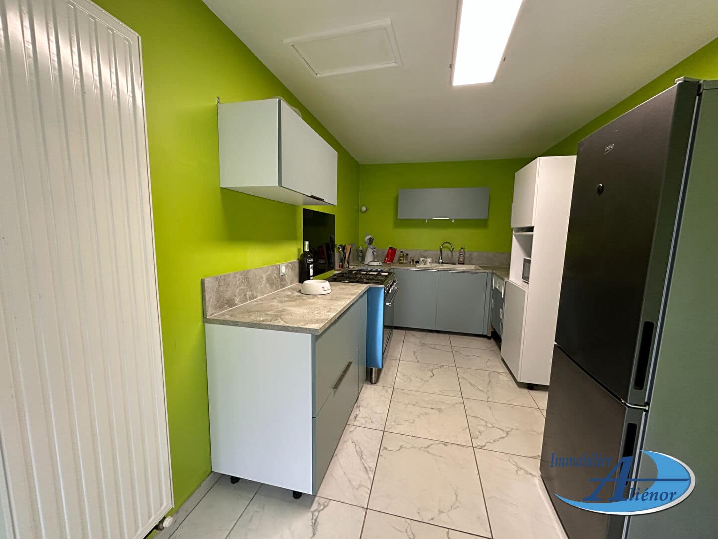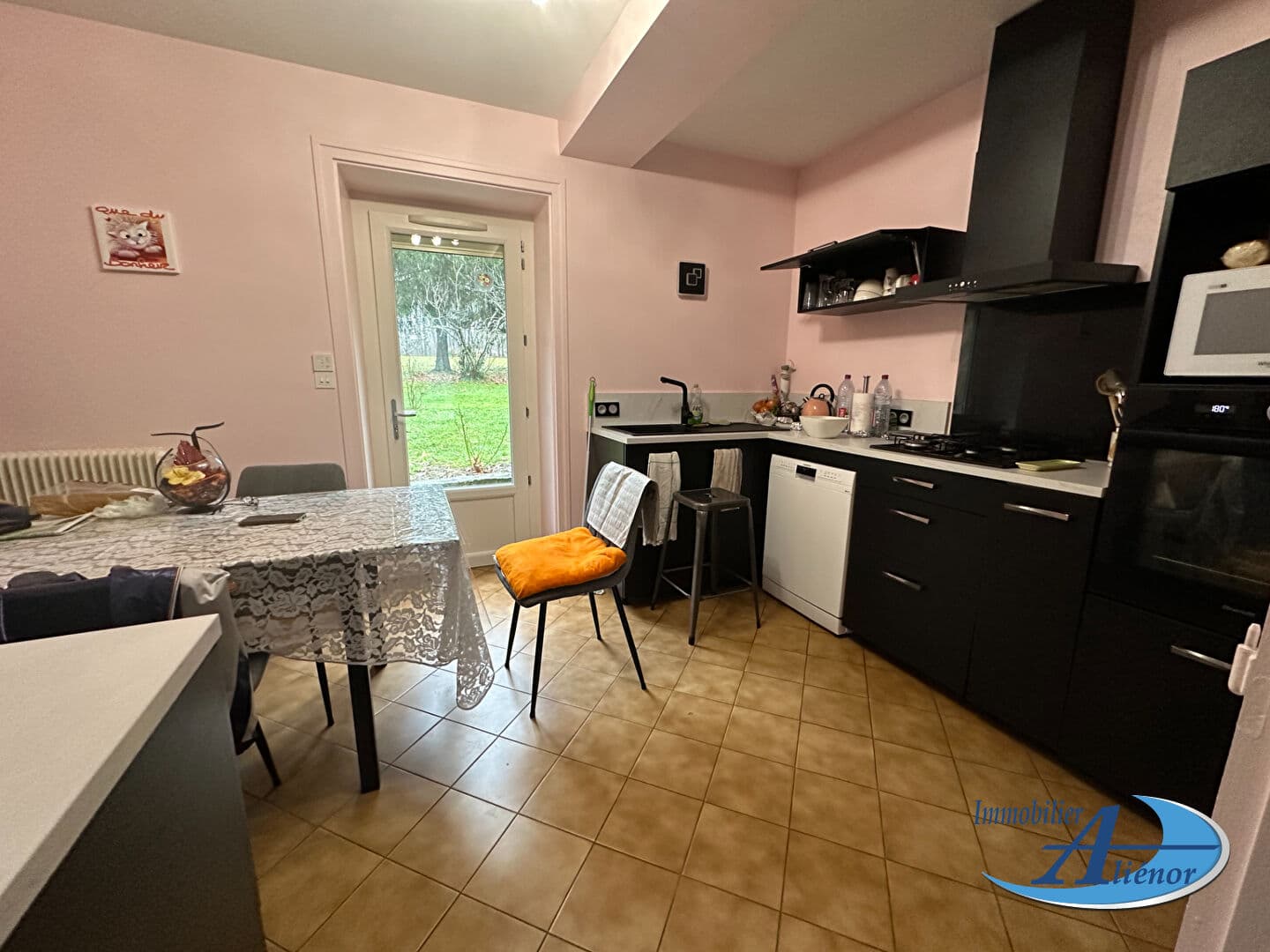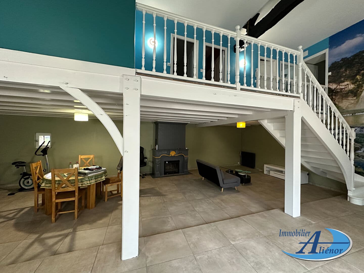– au RDC : salon/séjour de 66m² avec coin salle à manger et cheminée avec insert, cuisine indépendante meublée et équipée, accès vers garage fermé avec portail motorisé d’env. 40m².