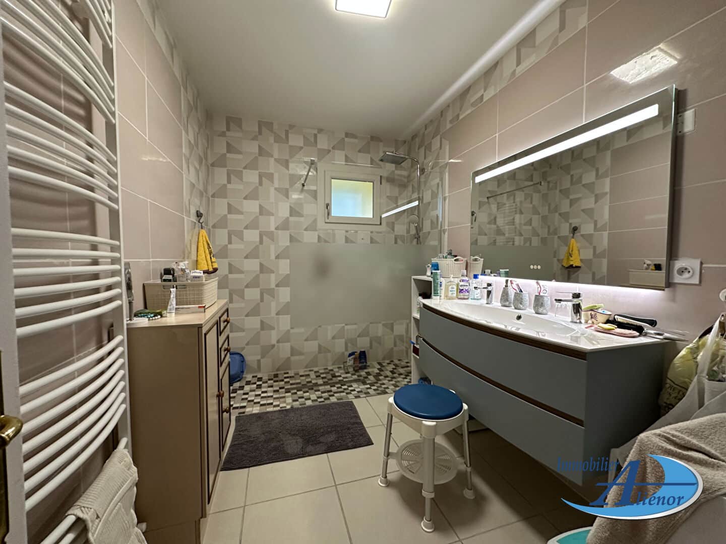 – au 1er Etage : palier et couloir en mezzanine, 3 grandes chambres, salle d’eau, WC indépendant et un dressing de 5m² avec coffre-fort intégré.