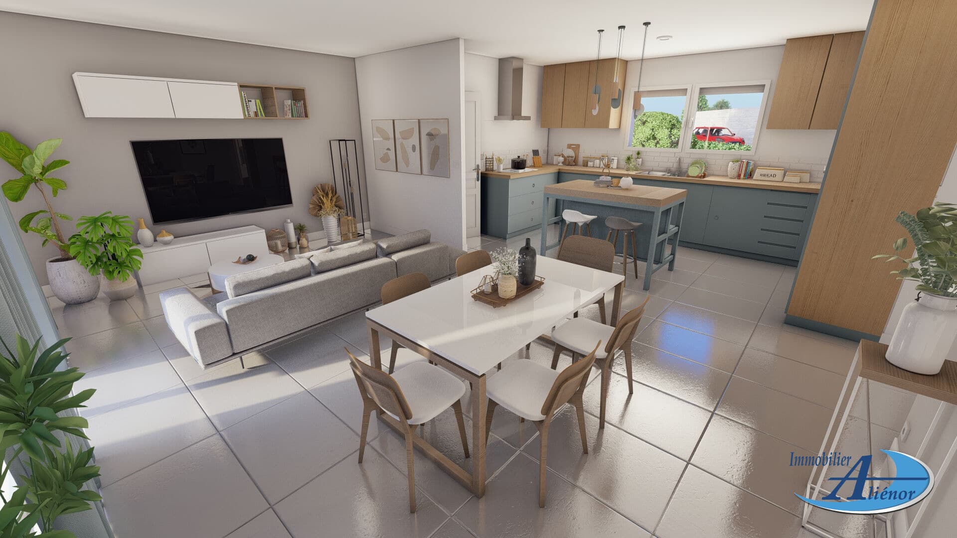 Exposée plein Ouest et respectant les normes environnementales RE2020, cette maison est composée d’un garage, d’un local technique et d’une cuisine ouverte sur le salon/séjour et de 3 chambres spacieuses. Elle vous offre un cadre de vie rêvé et un très bel espace jardin !