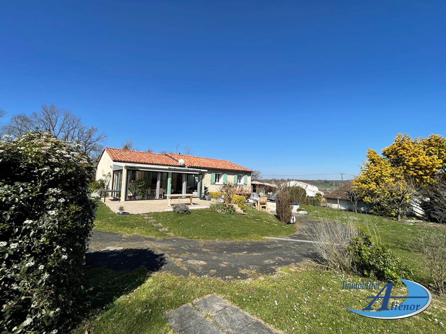 Située à Riberac, dans un environnement paisible, cette maison de 130 m² habitables vous propose un cadre de vie idéal et lumineux. Construite en 1990 et bien entretenue, elle dispose de 4 chambres spacieuses, parfaites pour une famille, ainsi que de 2 salles de bains. Le grand salon séjour lumineux, véritable pièce de vie de la maison, est un espace agréable et convivial, ouvert sur une cuisine aménagée et équipée. Vous apprécierez également la véranda qui offre une vue dégagée sur le jardin et la piscine, invitant à la détente.