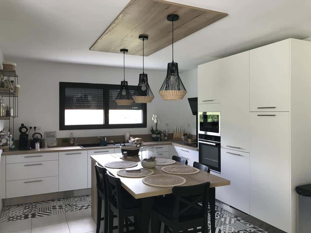 Projet maison + terrain : Ce bien de 90 m2 avec porche rentrant se compose d’une spacieuse pièce de vie avec cuisine ouverte sur le salon séjour, de 3 chambres avec placards intégrés.