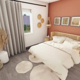 Cette maison comprend un grand séjour avec cuisine ouverte, des chambres avec rangements intégrés, une salle d’eau avec toilettes séparés. Il y a également un garage et un grand jardin. L’étude de votre projet est gratuite et les plans sont personnalisables alors n’hésitez pas à venir nous rencontrer pour discuter ensemble de votre projet.