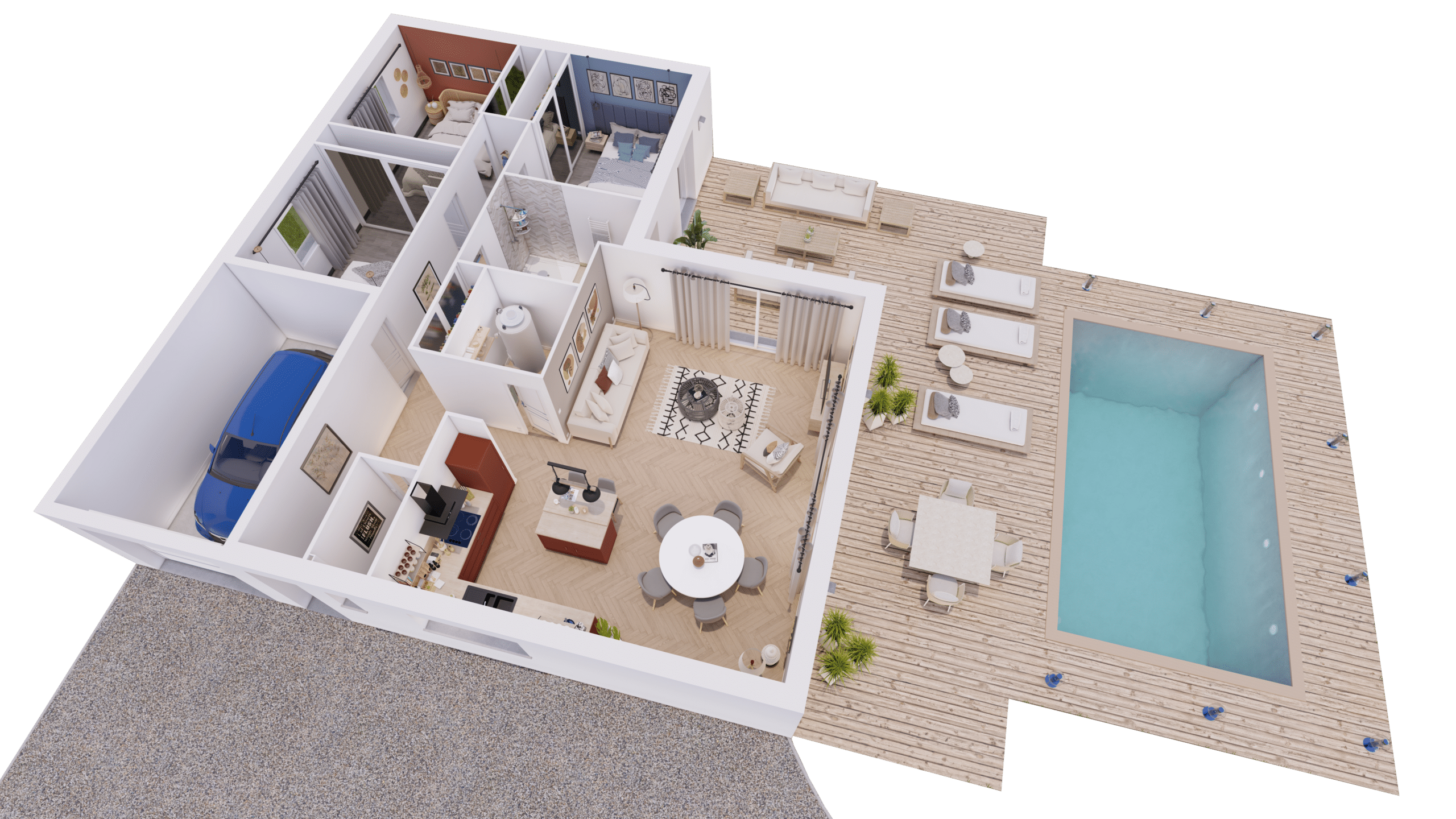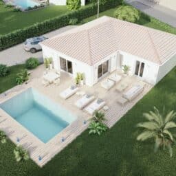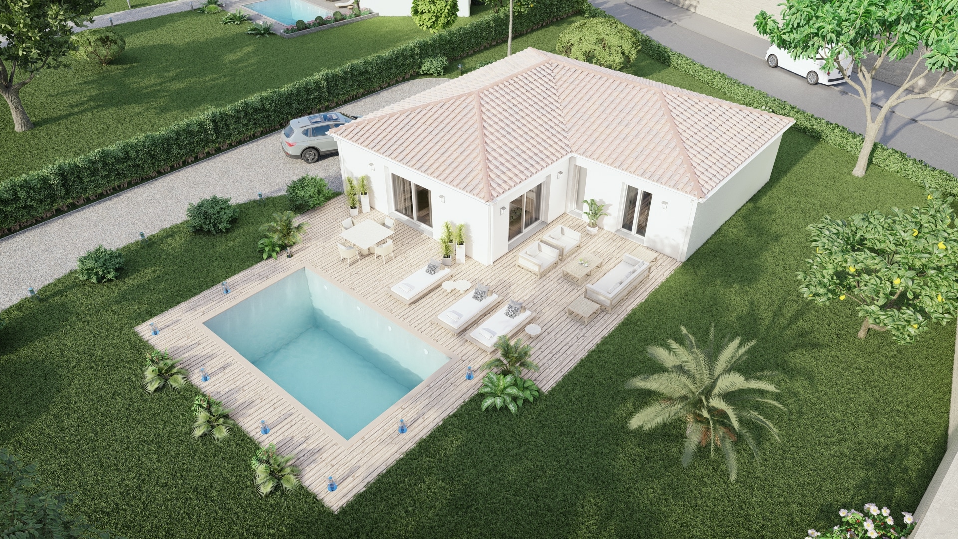 Le prix affiché comprend : la maison + le terrain + les frais annexes (terrassement, chemin d’accès, assainissement , raccordements aux réseaux eau/EDF/télécoms…). Le prix ne comprend pas les piscines et aménagements extérieurs.