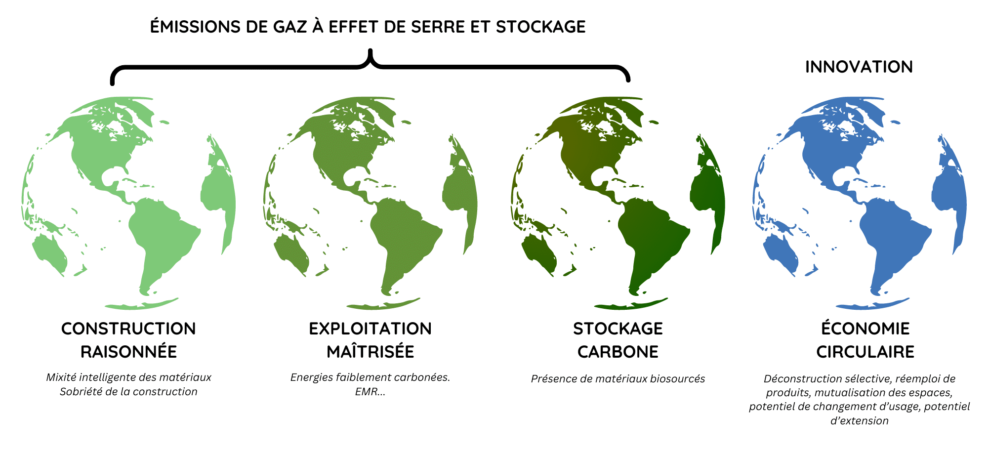 Indicateur Carbone Construction “IC Construction” : Cet indicateur correspond à l’impact carbone que vont avoir les produits de construction, de leur fabrication à leur fin de vie, sur une durée de 50 ans. Il vise à encourager l’optimisation des modes de construction, à inciter nos partenaires industriels à accélérer la réduction de l’empreinte carbone de leurs matériaux et matériels, ainsi qu’à favoriser l’utilisation de produits biosourcés.