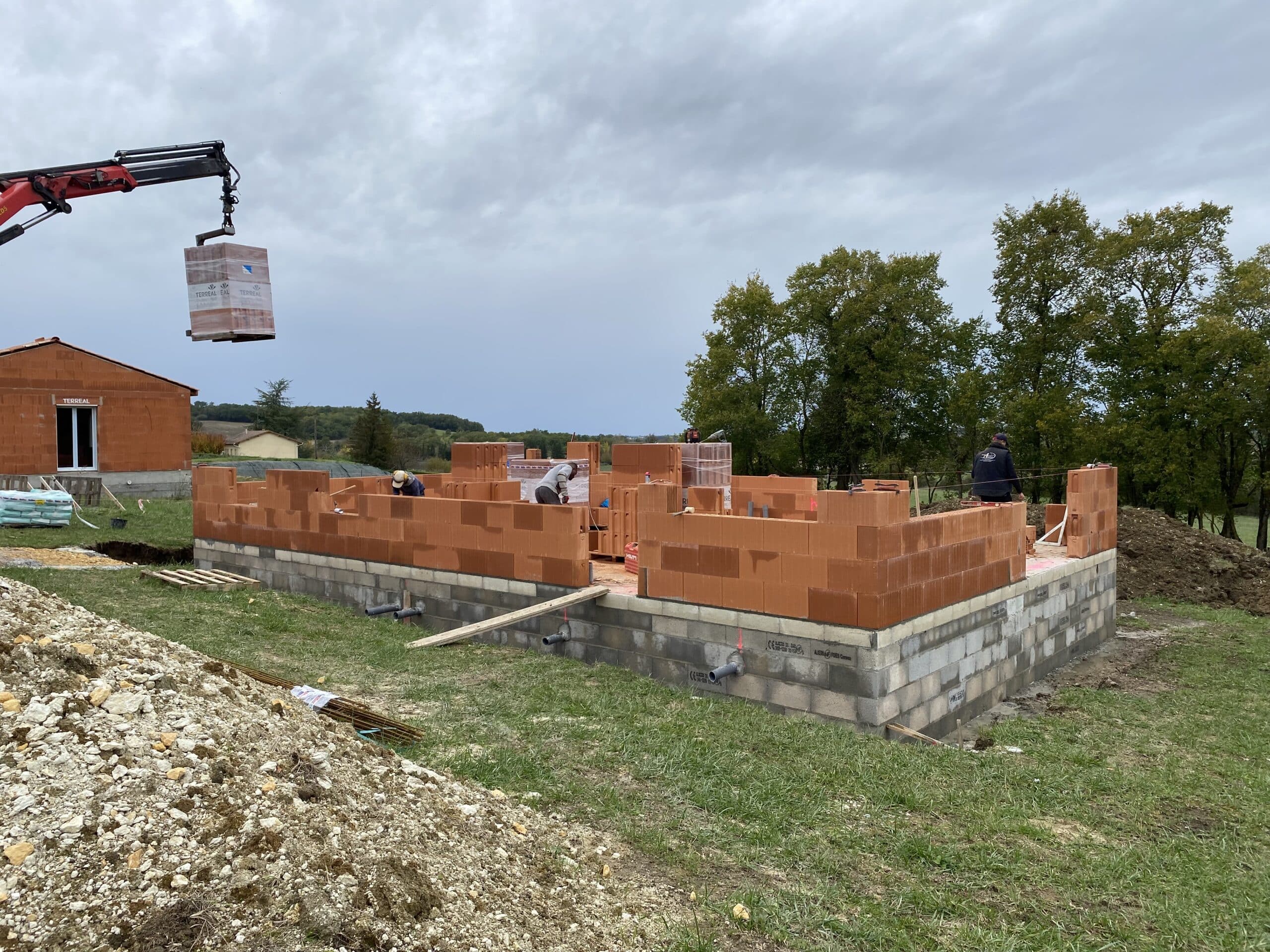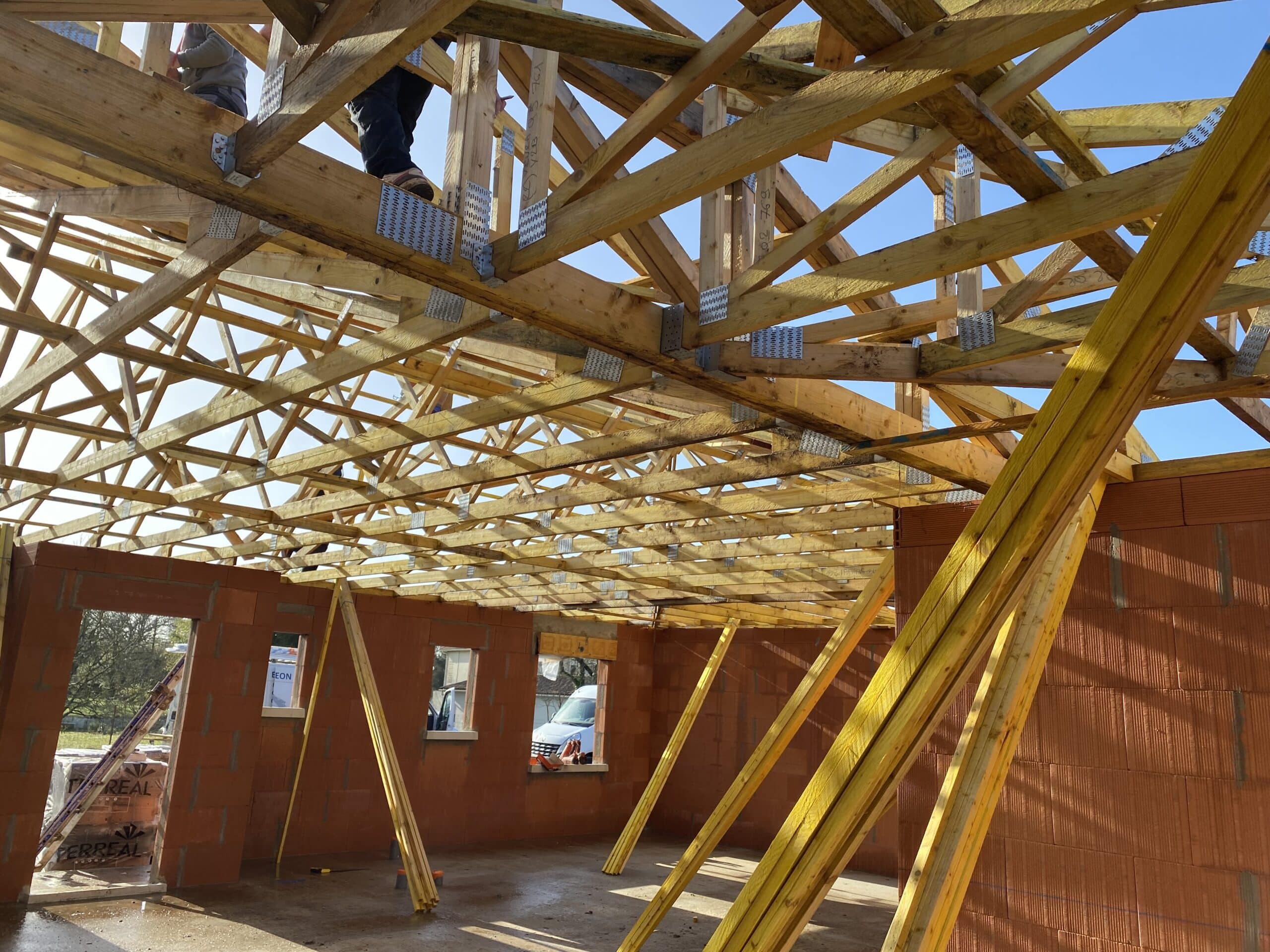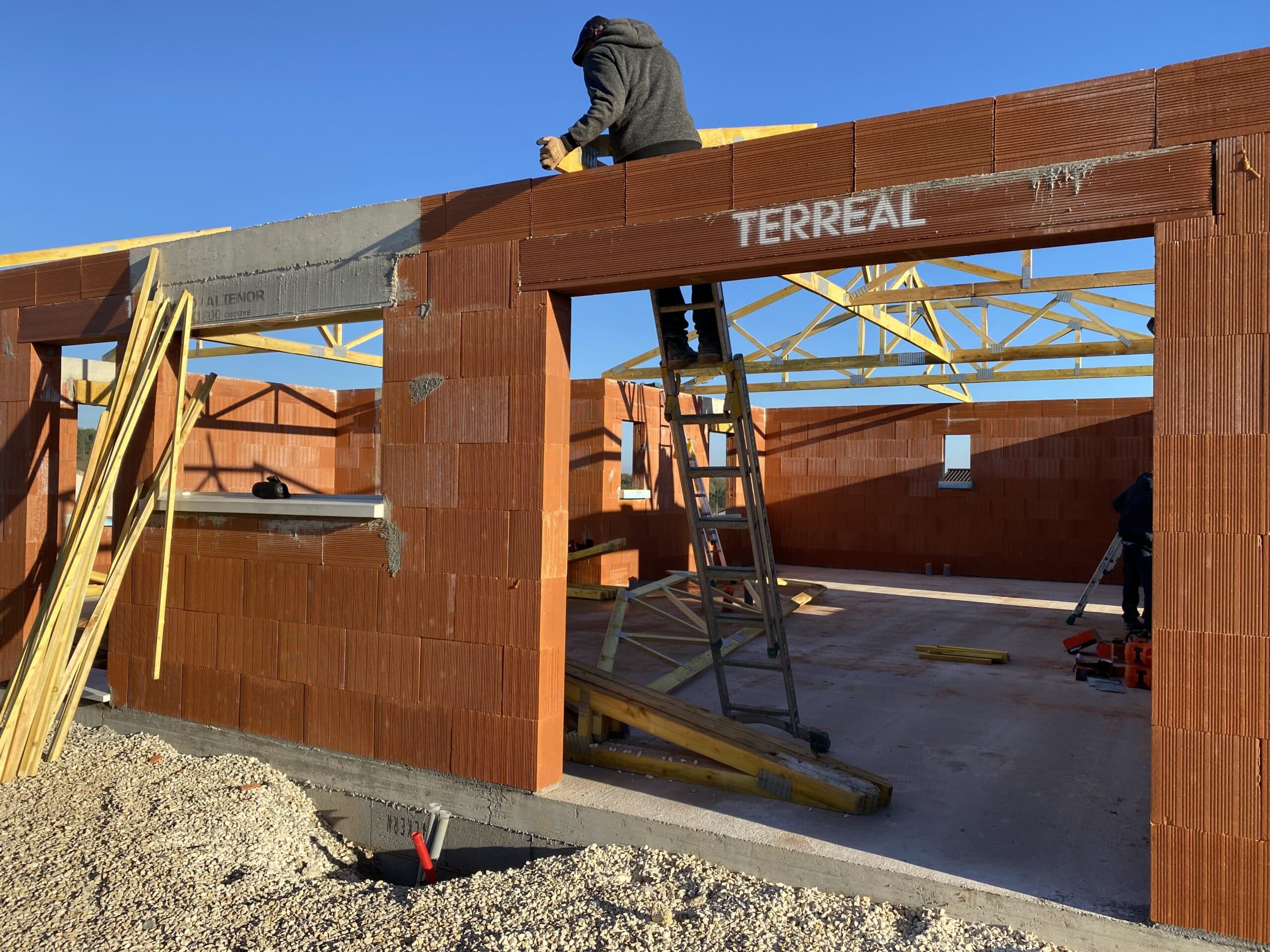 Maintenant, nous sommes prêts pour l’élévation des murs en brique, une étape cruciale dans la construction d’une maison. Après la réalisation des fondations, les briques sont méthodiquement disposées pour former les parois extérieures de la structure. Les maçons veillent à créer une liaison solide en utilisant du mortier entre chaque brique, assurant ainsi la stabilité et la durabilité de la construction. Cette phase crée l’enveloppe extérieure de la maison, définissant son contour et préparant le terrain pour les étapes ultérieures du processus de construction.