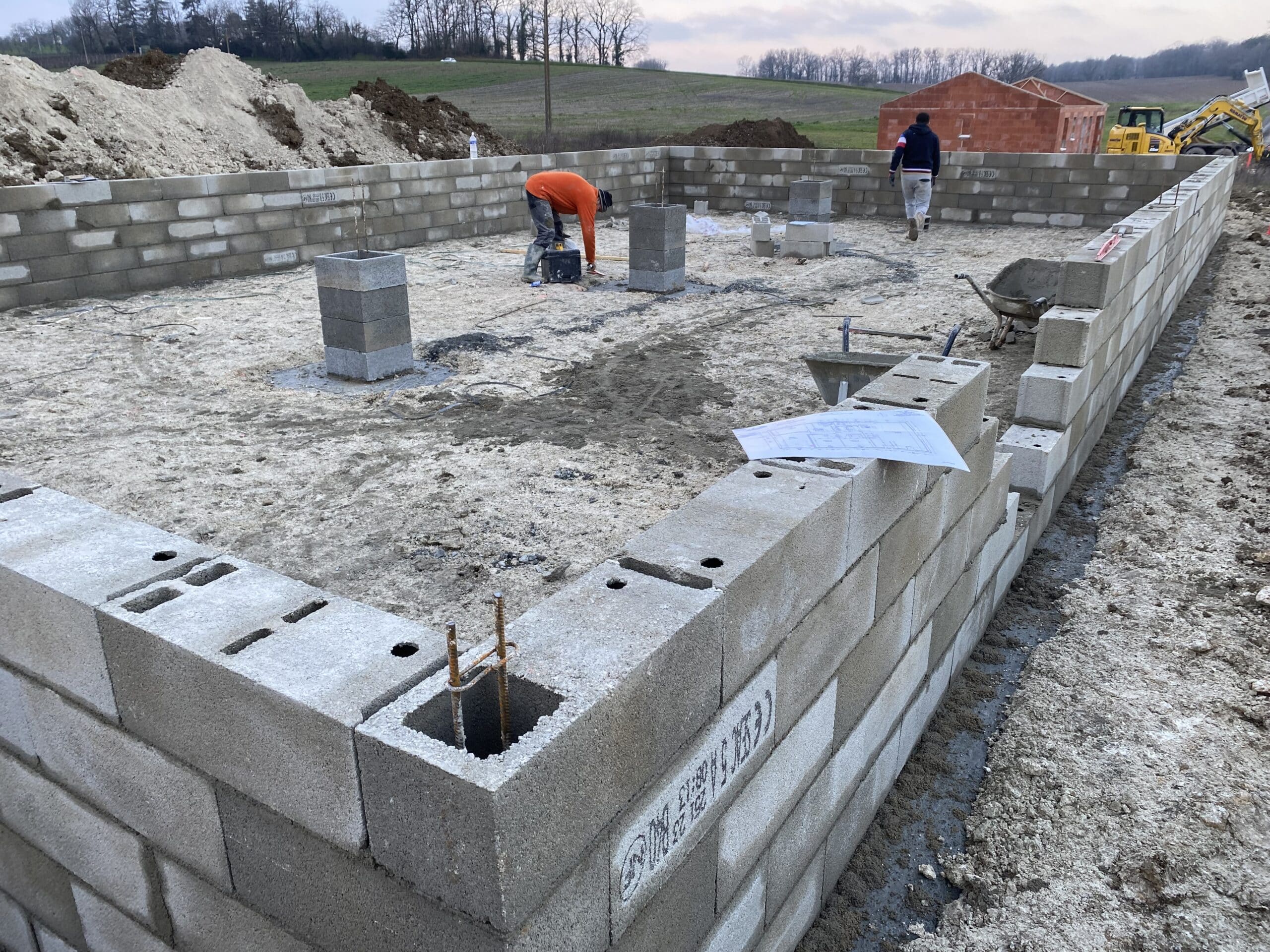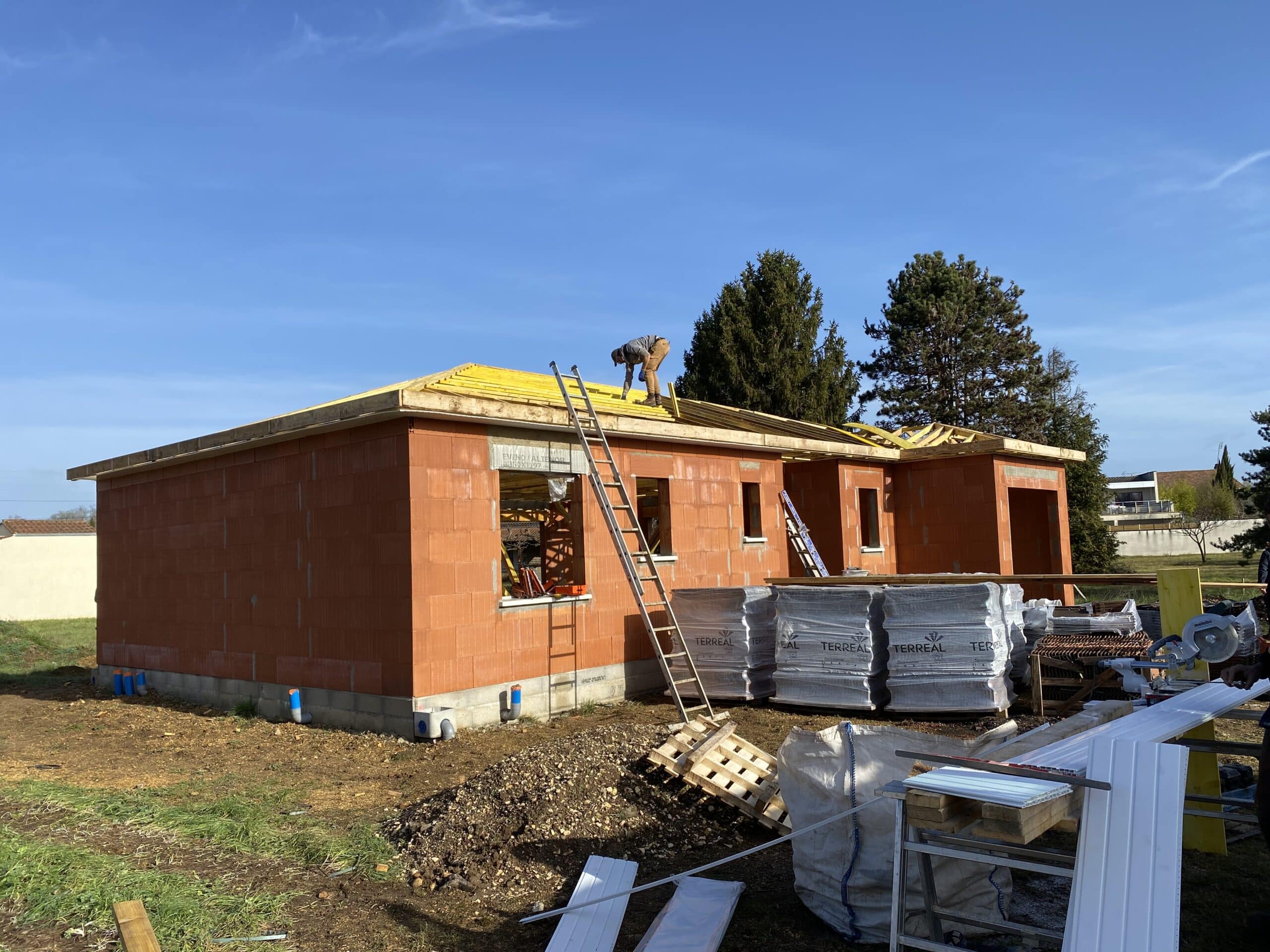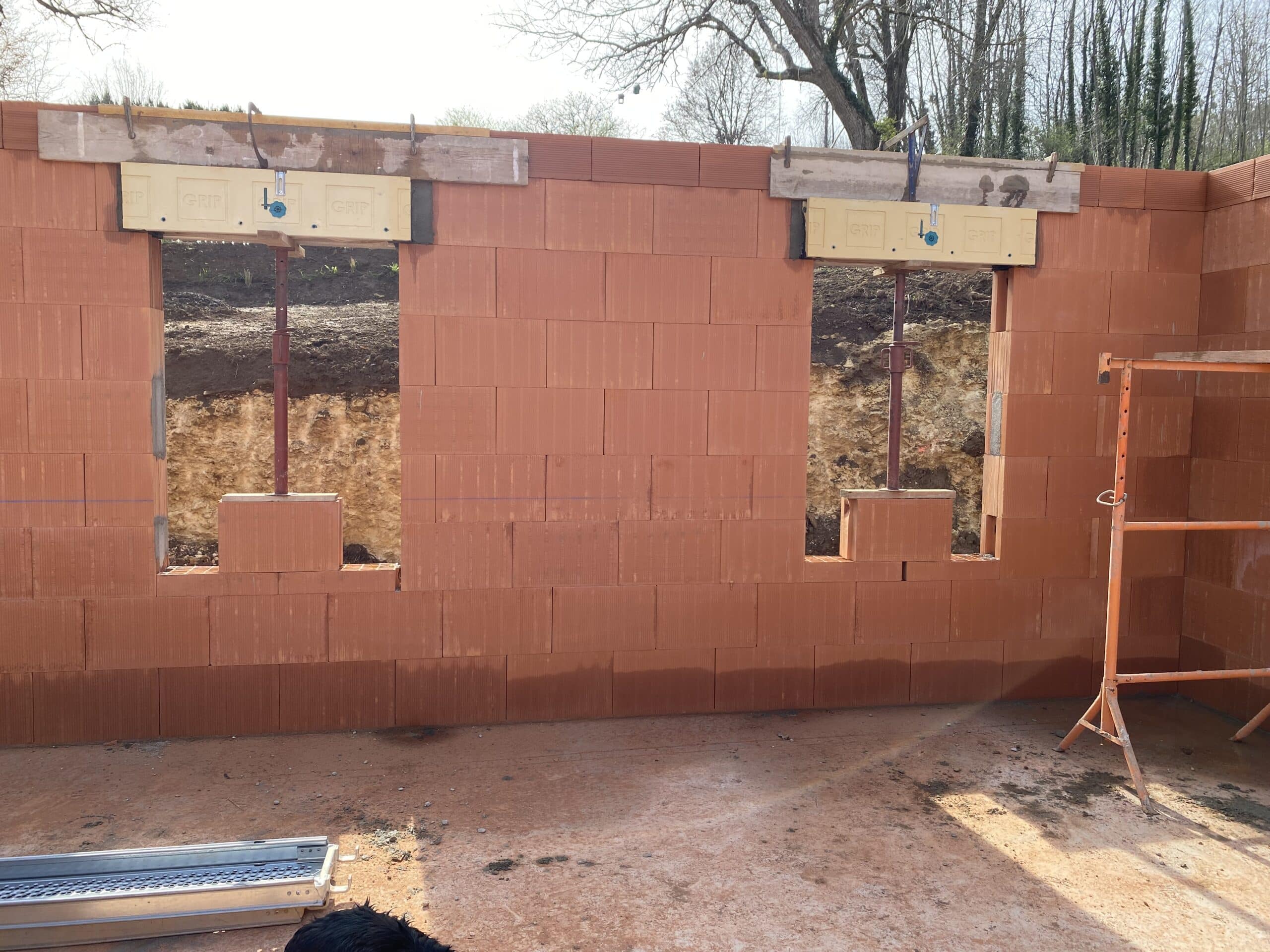 Maintenant, nous sommes prêts pour l’élévation des murs en brique, une étape cruciale dans la construction d’une maison. Après la réalisation des fondations, les briques sont méthodiquement disposées pour former les parois extérieures de la structure. Les maçons veillent à créer une liaison solide en utilisant du mortier entre chaque brique, assurant ainsi la stabilité et la durabilité de la construction. Cette phase crée l’enveloppe extérieure de la maison, définissant son contour et préparant le terrain pour les étapes ultérieures du processus de construction.