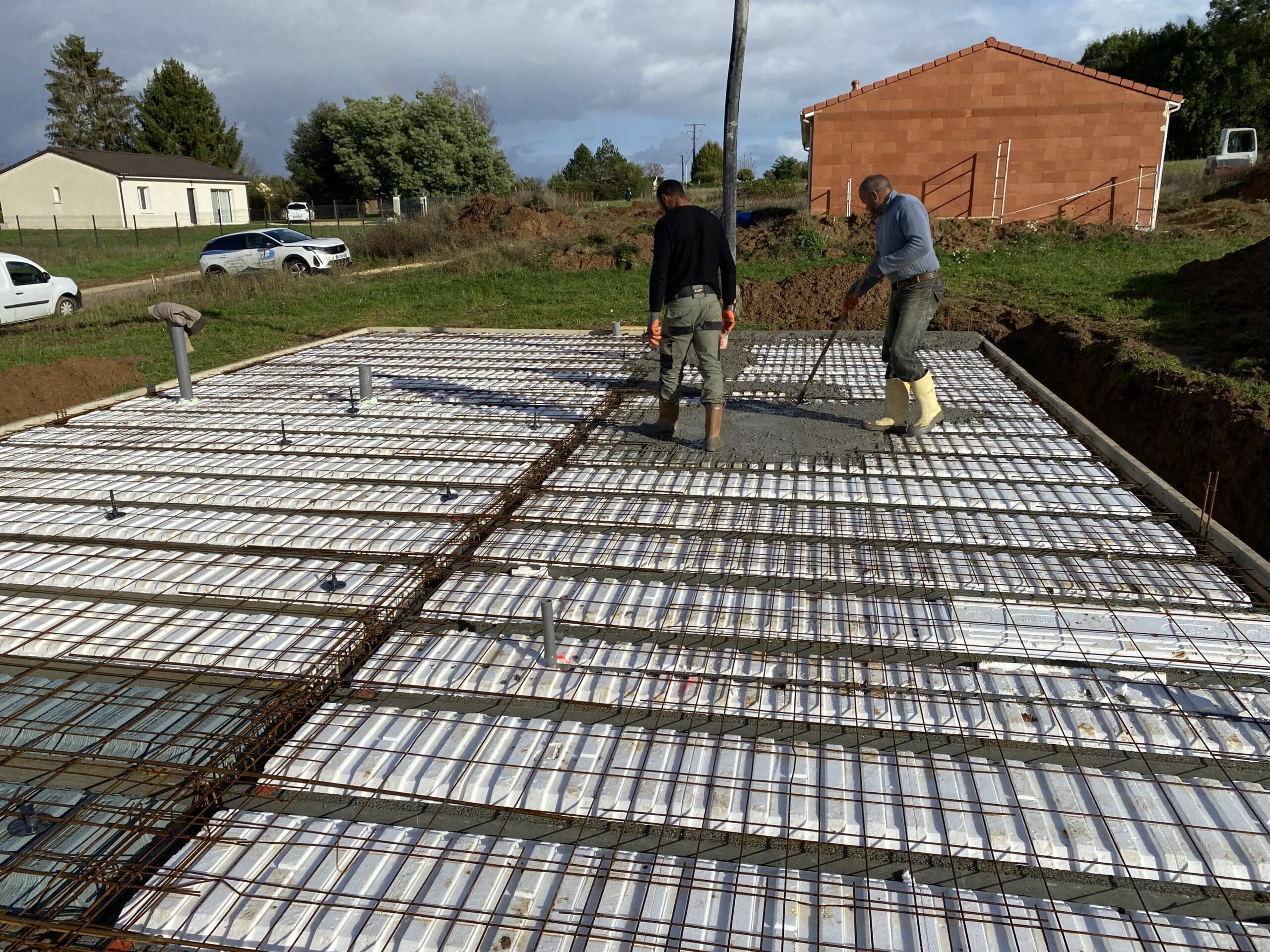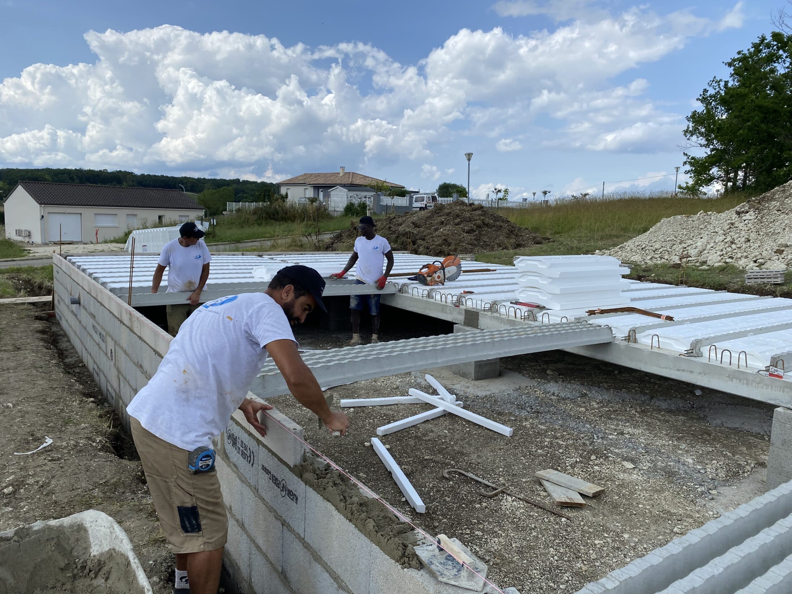 La pose d’un plancher hourdis avec des éléments en polystyrène est une méthode de construction moderne qui allie légèreté, isolation et rapidité d’exécution. Les poutrelles en béton préfabriquées sont disposées entre les murs porteurs, créant une structure porteuse. Les hourdis en polystyrène, légers et isolants, sont positionnés entre les poutrelles. Enfin, une dalle de béton est coulée pour former une surface solide. Cette approche présente l’avantage supplémentaire d’améliorer l’efficacité énergétique du bâtiment grâce aux propriétés isolantes du polystyrène, tout en offrant une résistance structurelle nécessaire.