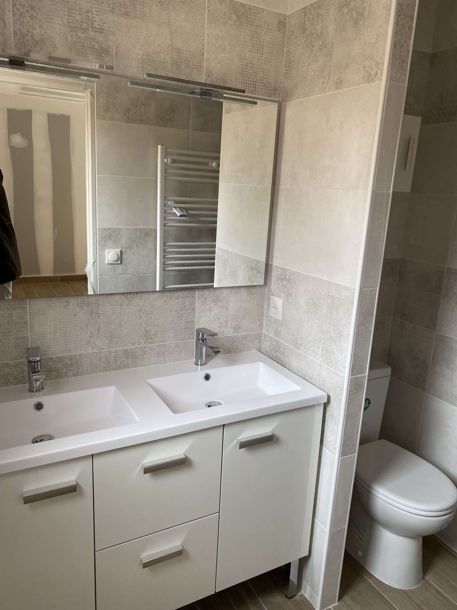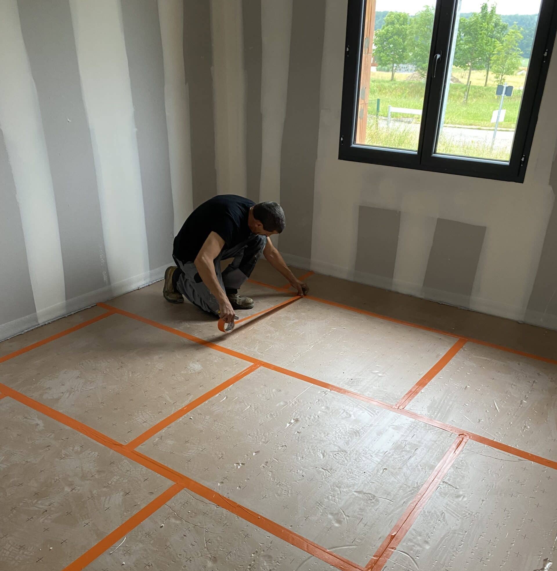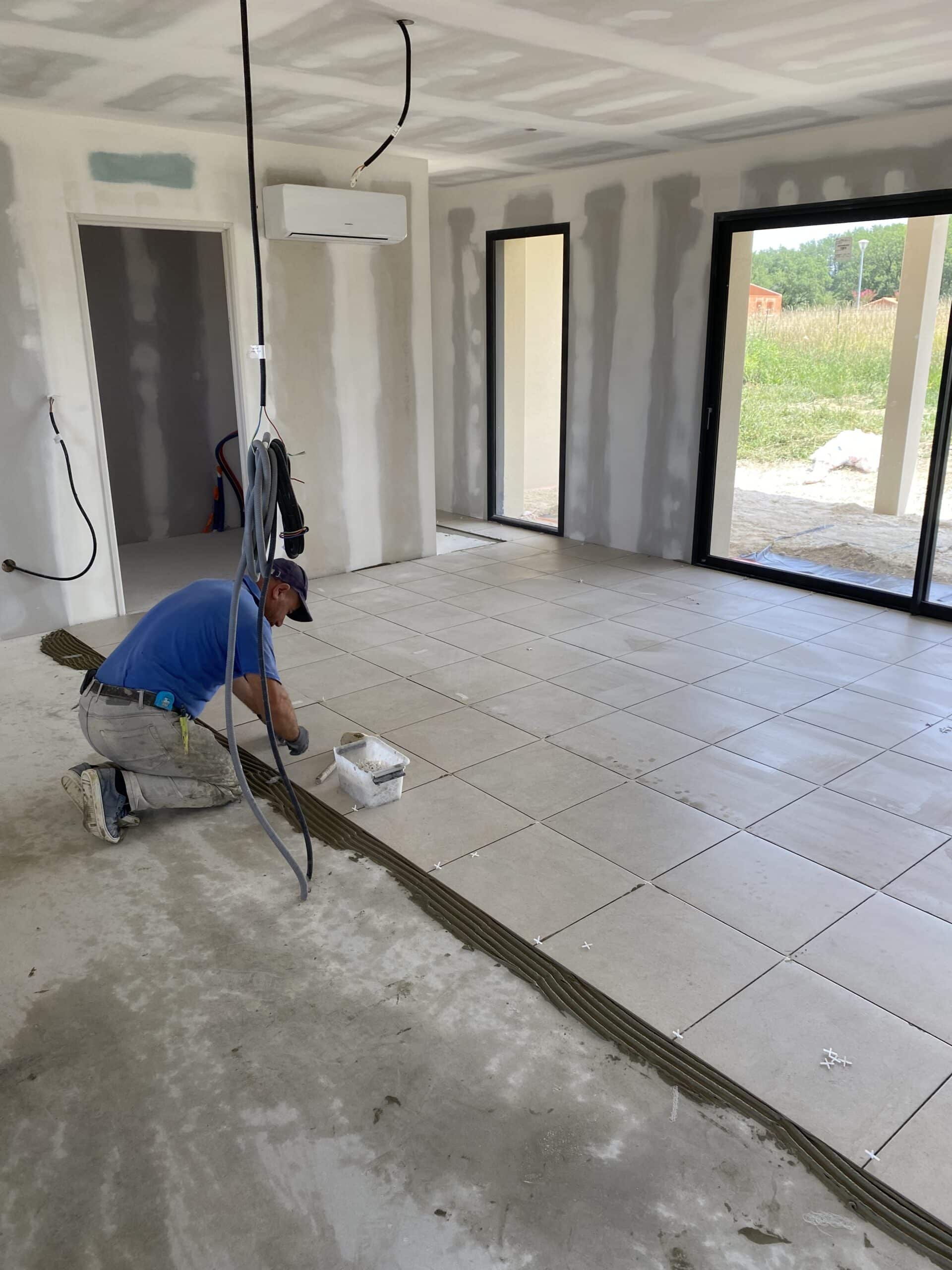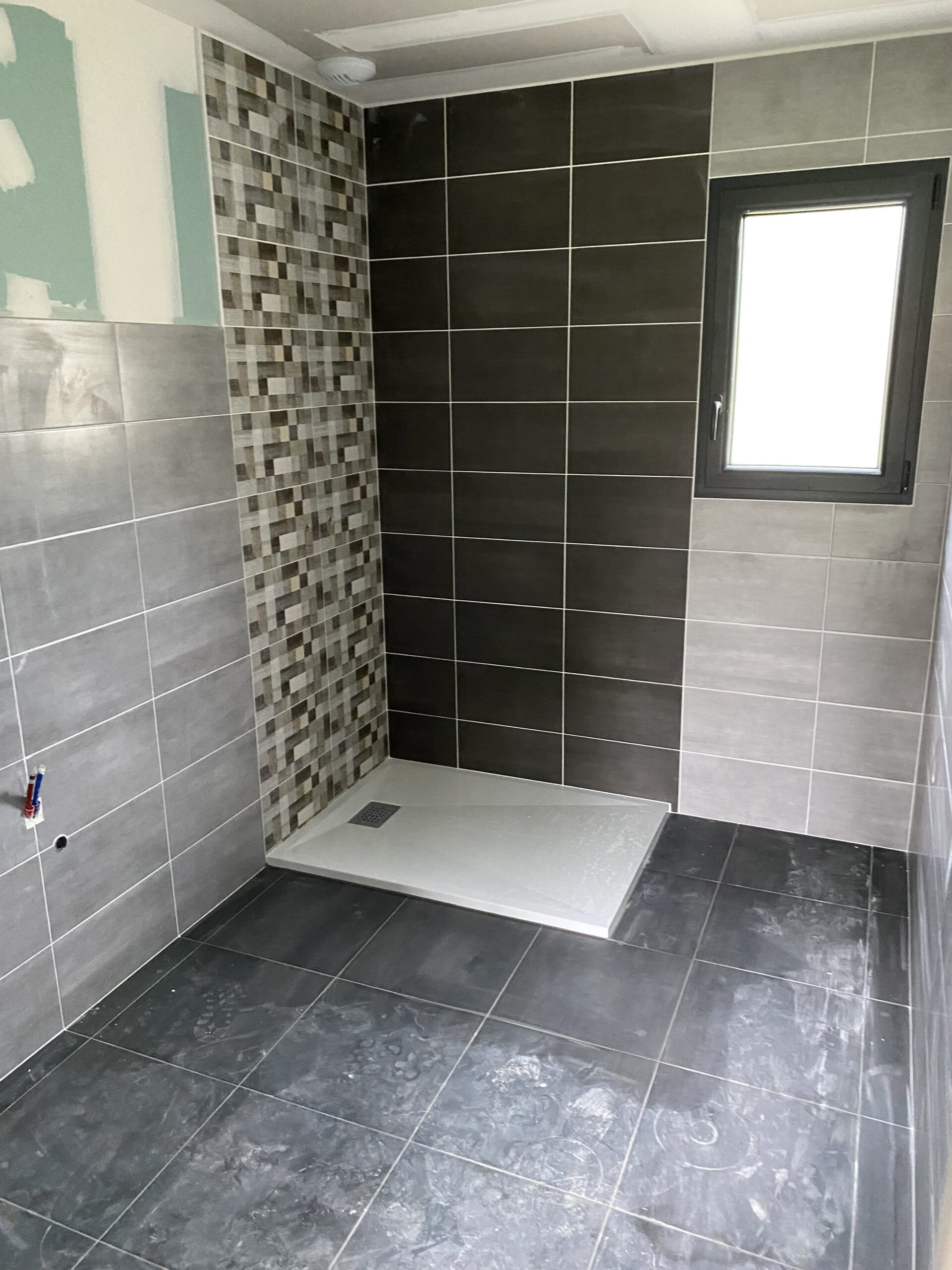 Occupons-nous du sol avec la mise en place d’une chape fluide, associée à une isolation en mousse rigide en dessous, pour garantir à la fois le confort thermique et l’efficacité énergétique. La couche isolante préalable assure une régulation thermique optimale, contribuant à maintenir une température intérieure agréable. Une fois l’isolant en place, la chape fluide est coulée avec précision, assurant une surface plane et uniforme. Cette substance autonivelante prépare le sol à recevoir son revêtement final. Le carrelage, sélectionné pour son esthétique et sa durabilité, est posé méticuleusement, offrant une finition impeccable qui conjugue élégance et praticité dans l’espace habitable.