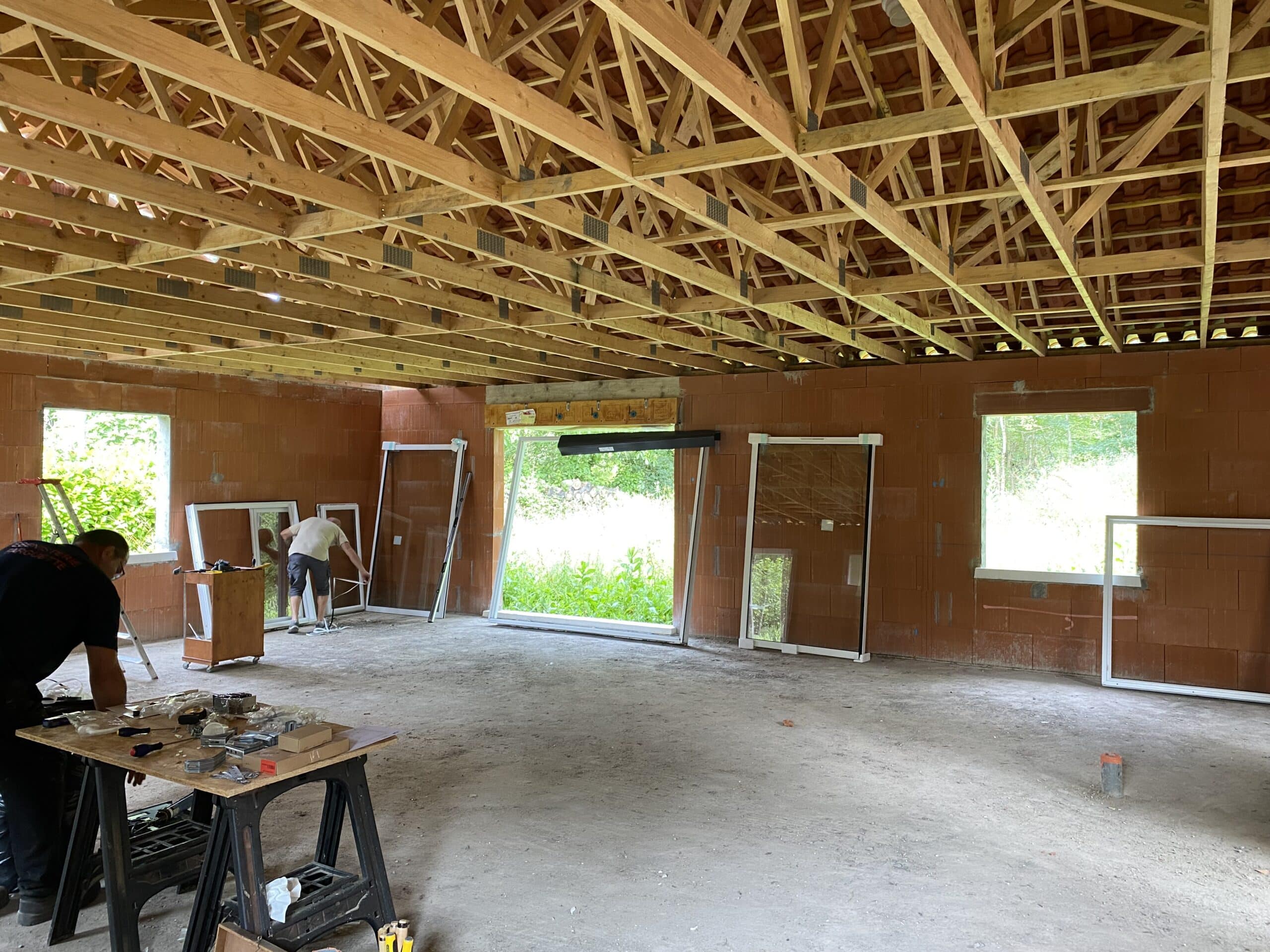 Afin de compléter notre clos couvert, focalisons-nous sur la pose des menuiseries et la réalisation du doublage intérieur. Les menuiseries, qu’il s’agisse de portes ou de fenêtres, définissent l’esthétique et la fonctionnalité des espaces internes. Leur installation précise assure une efficacité énergétique et une sécurité optimales. Parallèlement, le doublage intérieur, composé de matériaux isolants et résistants, garantit une isolation thermique et acoustique de qualité. Cette enveloppe intérieure crée un environnement confortable et écoénergétique, marquant ainsi la finalisation de notre projet de construction avec une attention particulière aux détails.