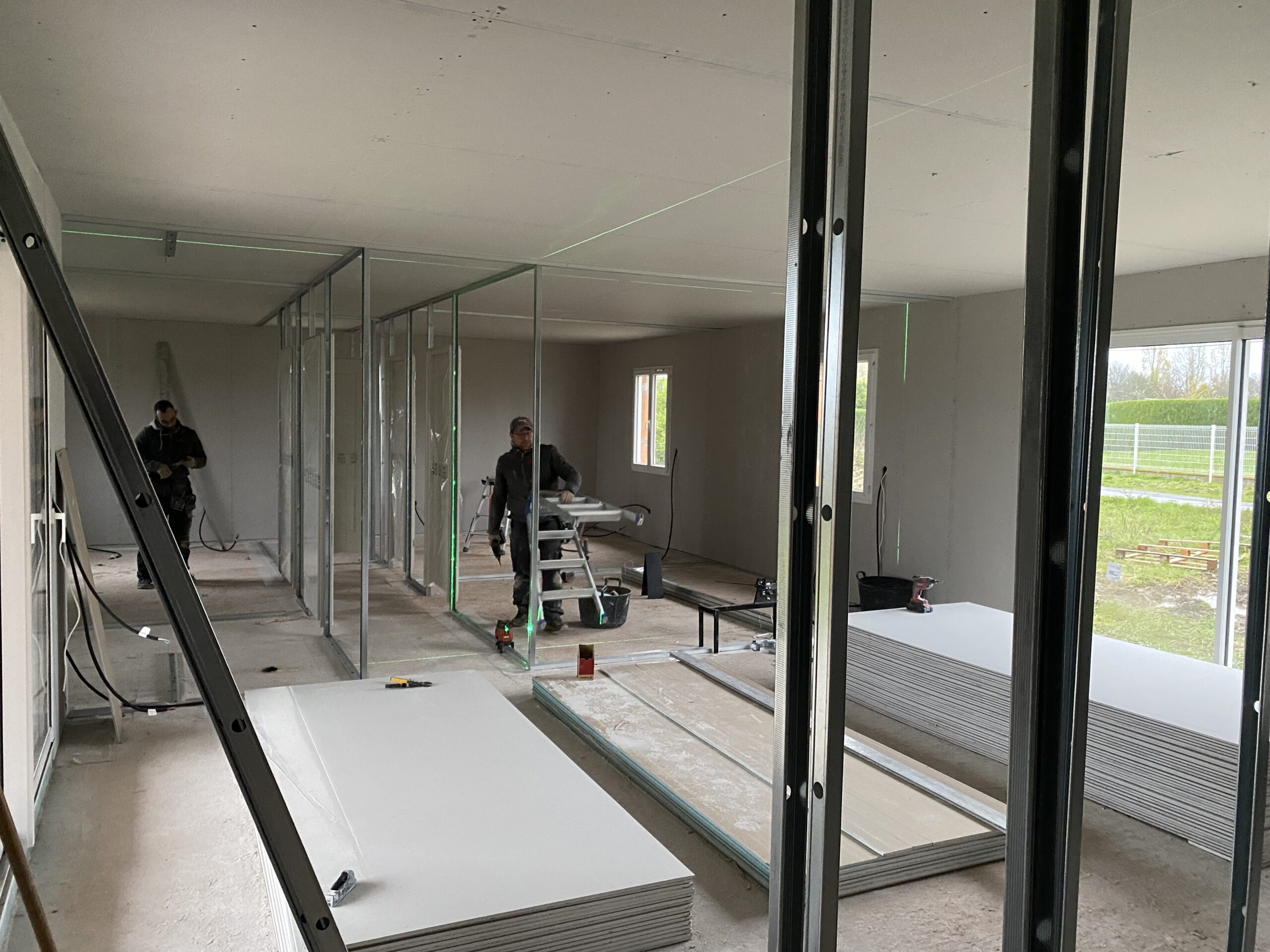 Voyons ensemble l’intérieur de votre maison prendre forme avec le cloisonnement et l’installation des blocs-portes. Ces étapes déterminantes façonnent l’espace intérieur, offrant non seulement des divisions fonctionnelles mais également des caractéristiques esthétiques. Les cloisons, éléments maîtres de cette composition, redéfinissent les espaces, assurant intimité et praticité. Construites avec des matériaux adaptés, elles contribuent à une isolation acoustique et thermique optimale, créant ainsi des environnements distincts et confortables. Les blocs-portes, en plus d’ajouter une touche esthétique, facilitent la circulation entre les pièces. L’installation précise de ces éléments allie design et fonctionnalité, contribuant à l’élaboration d’un intérieur harmonieux et répondant à vos besoins spécifiques.