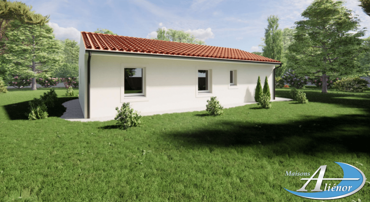 Spécialiste de la construction de maisons en Dordogne, Corrèze & Charente, Maisons Aliénor vous présente son modèle de maison d’une superficie de 107.30 m², de plain-pied, généreuse, contemporaine et lumineuse, largement ouverte sur l’extérieur.