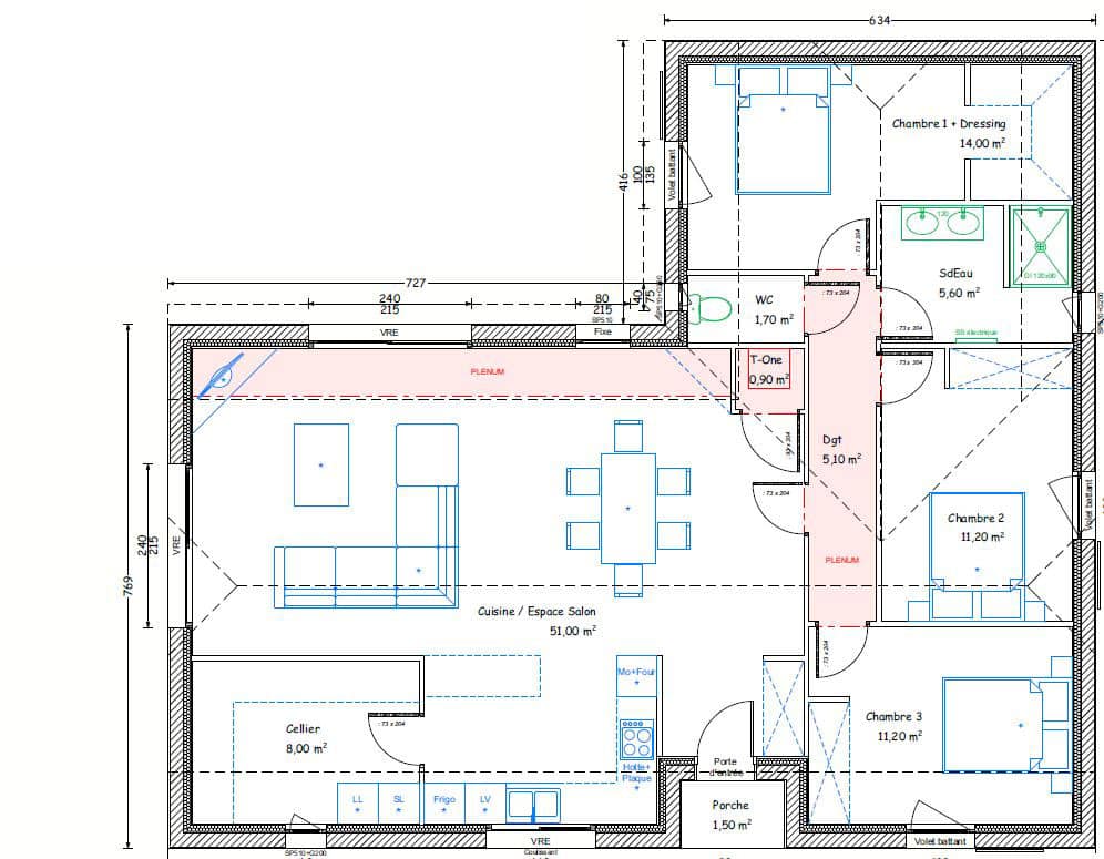 Ce modèle de maison est à titre d’exemple afin de vous donner des idées et de vous montrer le travail effectué. Toutefois, nous mettons un point d’honneur à créer pour vous le plan de la maison qui VOUS convient, qui VOUS ressemble, dans le budget que vous nous annoncez aussi bien dans le traditionnel que dans le contemporain !