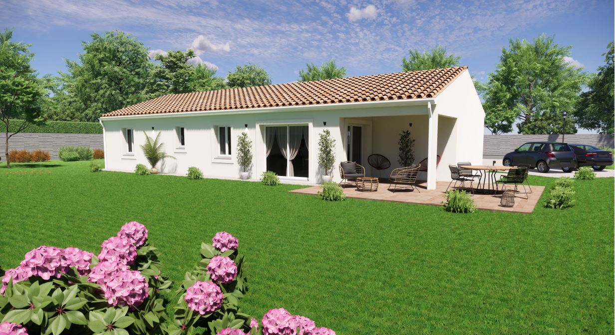 Spécialiste de la construction de maisons en Dordogne, Corrèze & Charente, Maisons Aliénor vous présente son modèle de maison d’une superficie de 105 m², de plain-pied, généreuse, contemporaine et lumineuse, largement ouverte sur l’extérieur.