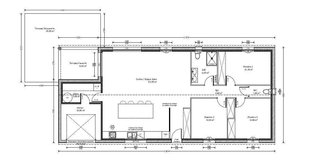 Ce modèle de maison est à titre d’exemple afin de vous donner des idées et de vous montrer le travail effectué. Toutefois, nous mettons un point d’honneur à créer pour vous le plan de la maison qui VOUS convient, qui VOUS ressemble, dans le budget que vous nous annoncez aussi bien dans le traditionnel que dans le contemporain !