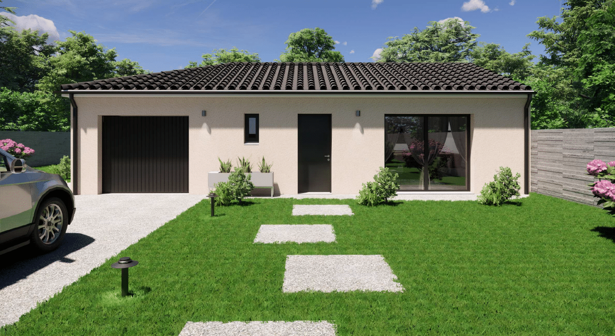 Ce modèle de maison plain-pied saura vous charmer ! Cette maison moderne généreuse, contemporaine et lumineuse, largement ouverte sur l’extérieur se compose de deux espaces bien séparés permettant de distinguer les pièces de jour et celles de nuit.