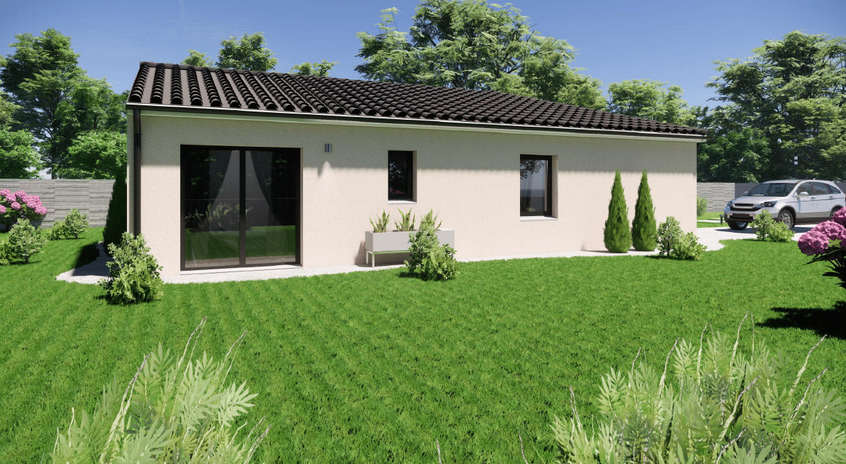Spécialiste de la construction de maisons en Dordogne, Corrèze & Charente, Maisons Aliénor vous présente son modèle de maison d’une superficie de 99.85 m², de plain-pied, généreuse, contemporaine et lumineuse, largement ouverte sur l’extérieur.