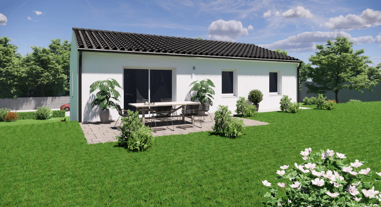 Spécialiste de la construction de maisons en Dordogne, Corrèze & Charente, Maisons Aliénor vous présente son modèle de maison d’une superficie de 75.77 m², de plain-pied, généreuse, contemporaine et lumineuse, largement ouverte sur l’extérieur.
