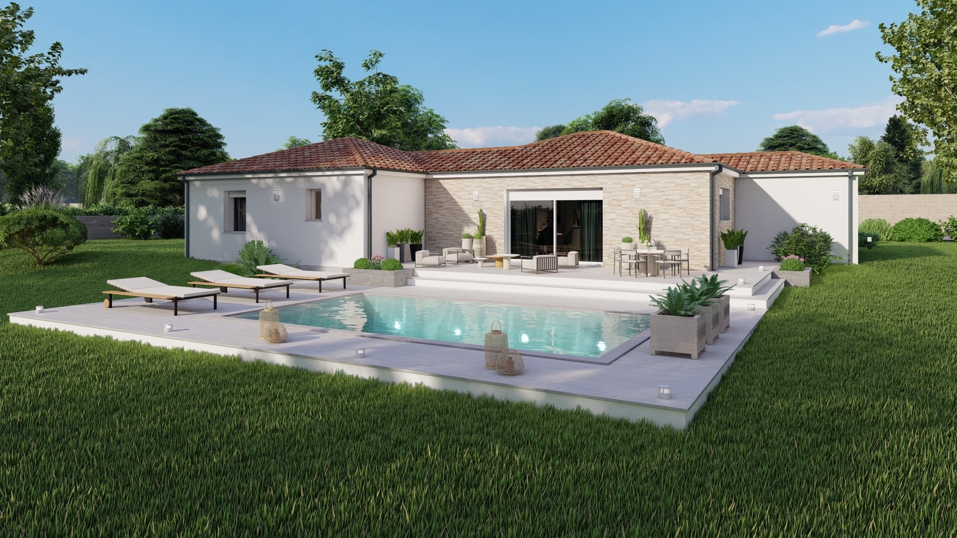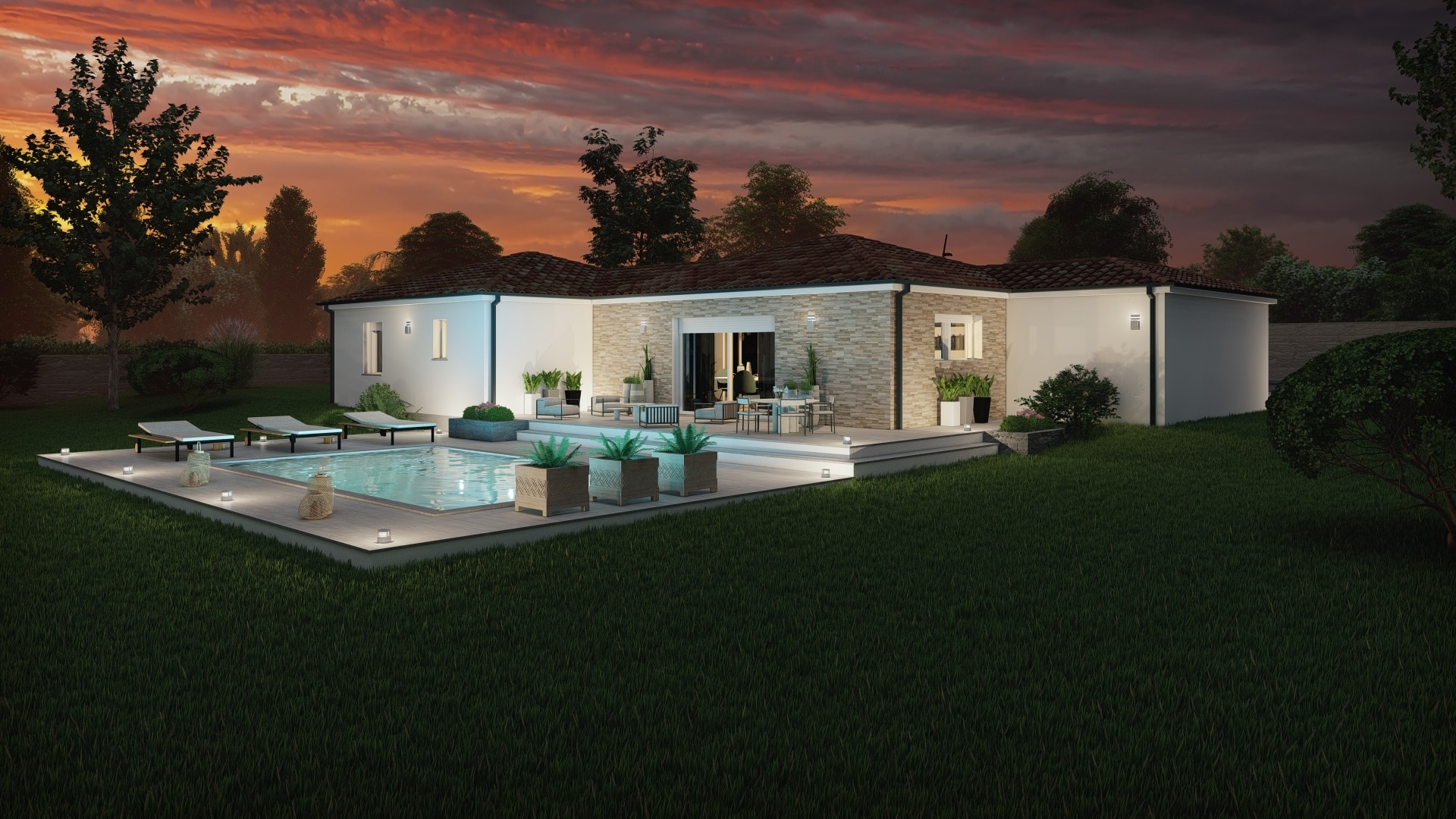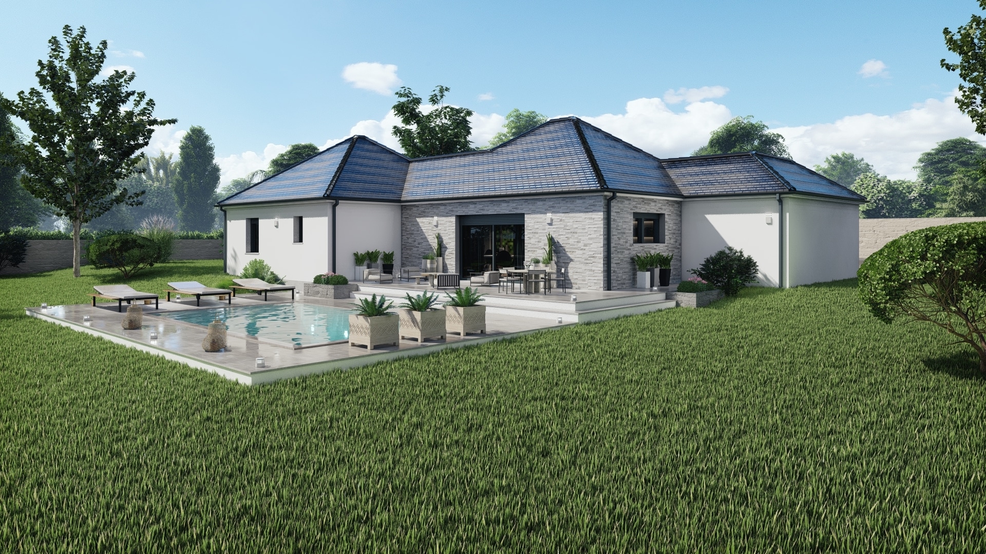 Spécialiste de la construction de maisons en Dordogne, Corrèze & Charente, Maisons Aliénor vous présente son modèle de maison de plain-pied au style moderne.
