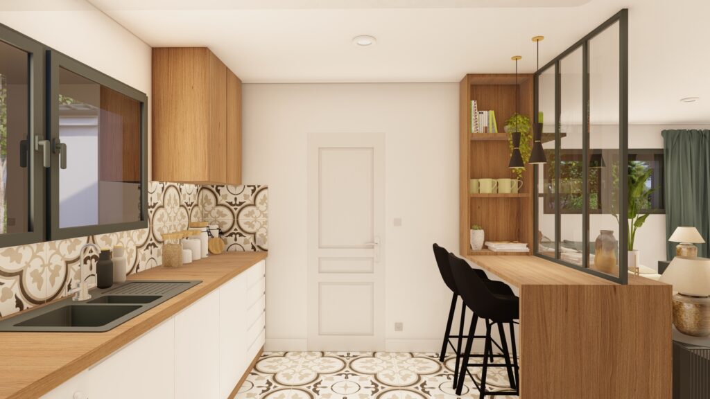 🍴 Une cuisine ouverte sur un espace de vie particulièrement lumineux et spacieux,
