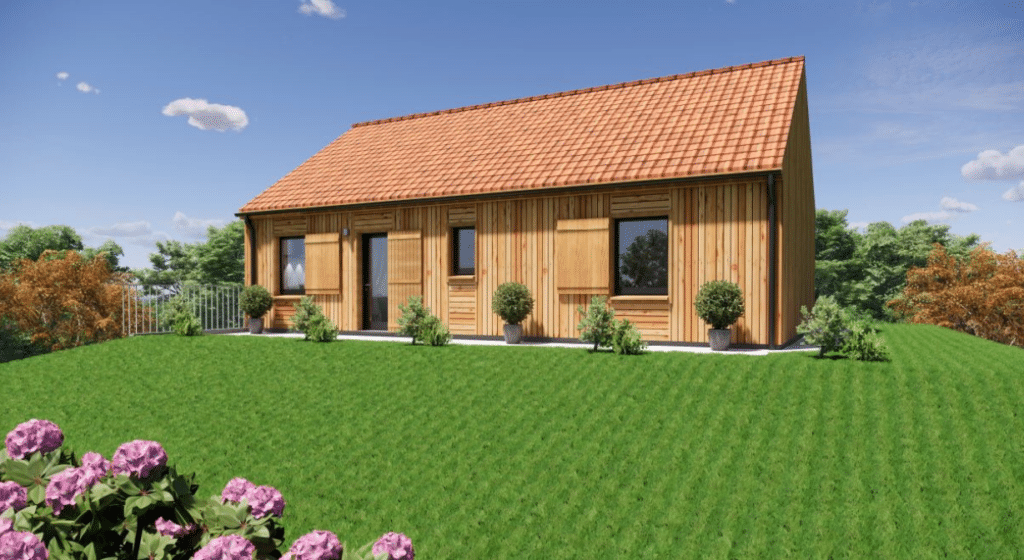 Spécialiste de la construction de maisons bois en Dordogne, Corrèze & Charente, Maisons Aliénor “Bois” vous présente son modèle de maison bois de plain pied de forme rectangulaire Fauvette.