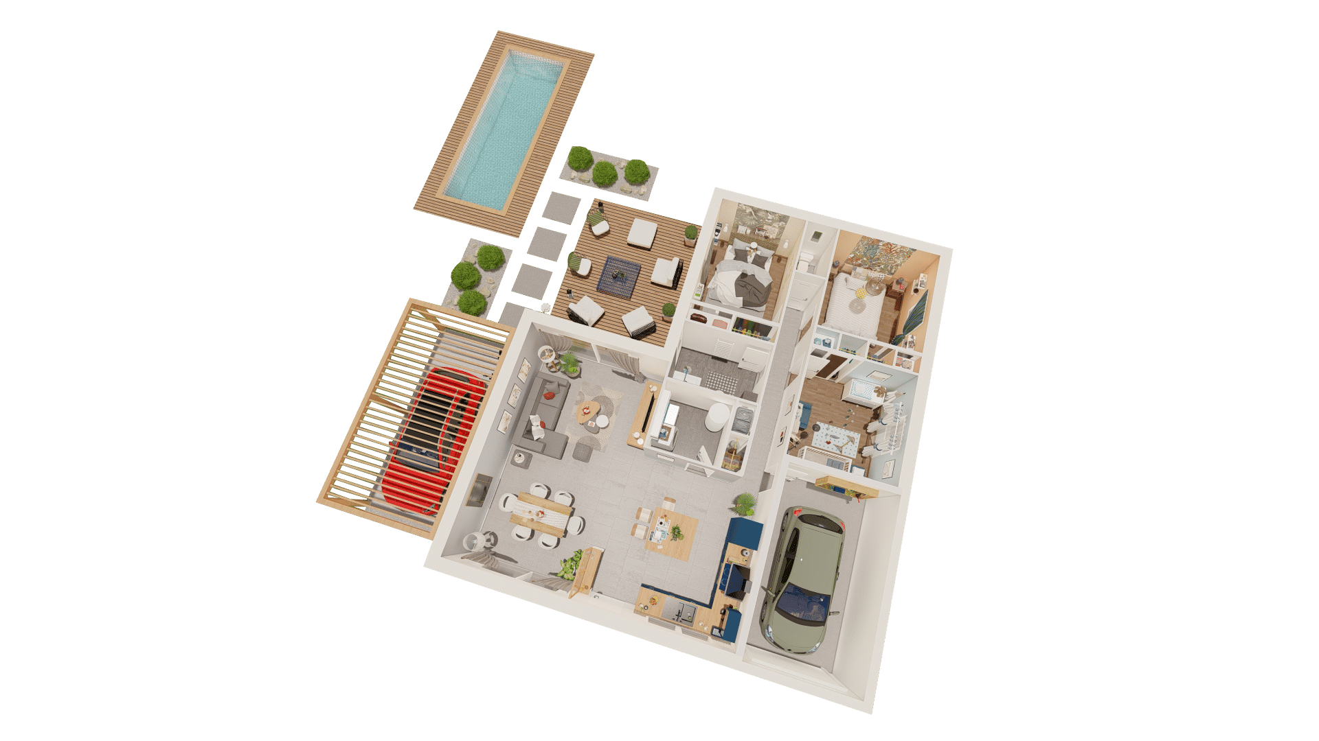 Opter pour le modèle de maison COLINE, c’est choisir une demeure qui incarne un équilibre parfait entre modernité et douceur, offrant un cadre de vie sain et agréable. Construite avec des matériaux durables et écologiques, le modèle de maison COLINE témoigne de notre engagement envers la construction responsable et le bien-être de ses occupants.