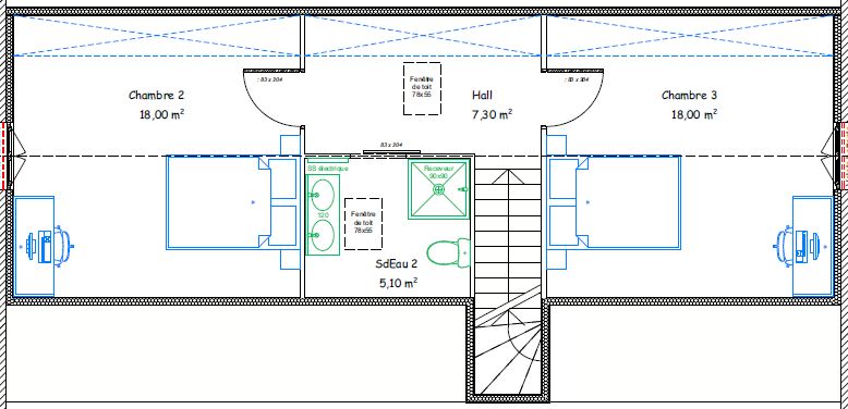 Ce modèle de maison est à titre d’exemple afin de vous donner des idées et de vous montrer le travail effectué. Toutefois, nous mettons un point d’honneur à créer pour vous le plan de la maison qui VOUS convient, qui VOUS ressemble, dans le budget que vous nous annoncez aussi bien dans le traditionnel que dans le contemporain !