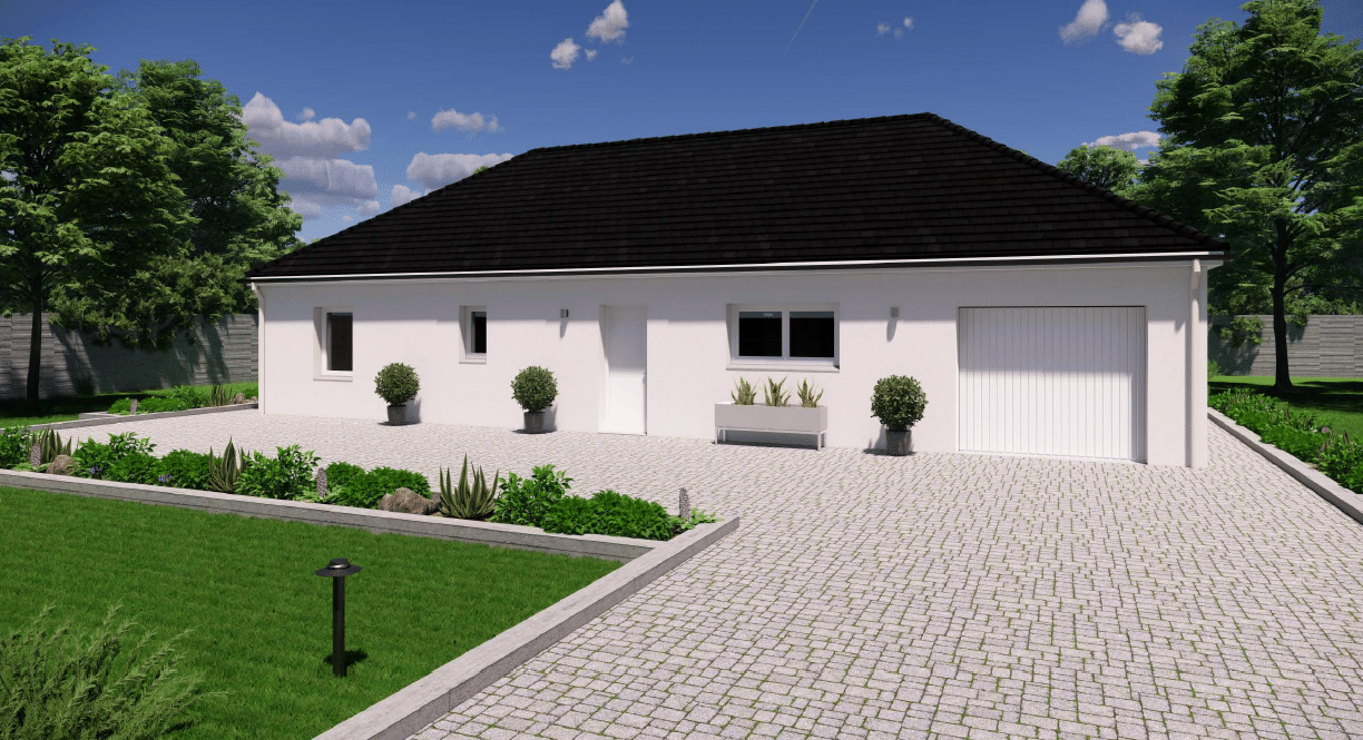 Ce modèle de maison plain-pied saura vous charmer ! Cette maison moderne généreuse, contemporaine et lumineuse, largement ouverte sur l’extérieur se compose de deux espaces bien séparés permettant de distinguer les pièces de jour et celles de nuit.